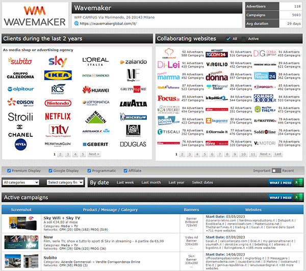 • Know Your Competitors: Discover the clients they serve, the campaigns they launch, and the websites they collaborate with.