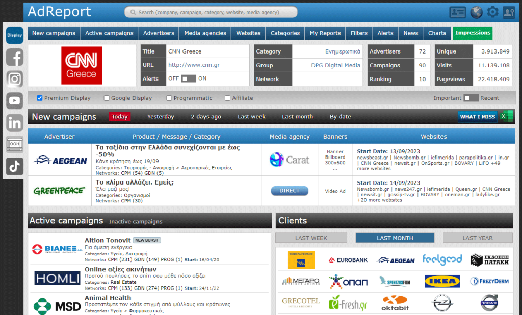 • Agency Intelligence: Explore media agency profiles, uncover their client roster, and see campaigns they’ve launched. Know if they’ve overlooked your website.